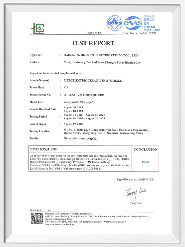 Blyfri piezoelektrisk keramik är känd som den piezoelektriska industrin "pärla", kommer framtiden att gradvis ersätta blybaserad piezoelektrisk keramik i alla aspekter, som redan har samma piezoelektriska prestanda, och blybaserad piezoelektrisk plåt. Det är helt giftfritt, ofarligt, säkert och miljövänligt, innehåller inte bly, antimon och andra tungmetaller och andra Rohs-begränsade element, hög Curie-temperatur Tc-328 ° C, mycket låg elektrisk förlust TangentLoss Därför har blyfritt piezoelektriskt medicinskt atomiseringschip stort kommersiellt värde och universellt värde, verkligt giftfri och miljövänlig, blyfri piezoelektrisk keramik utöver icke-förorenande, piezoelektrisk prestanda i proportion till blybaserad keramik, kommer att bli en populär miljövänlig piezoelektrisk keramik. Efter år av forskning och utveckling, efter kontinuerliga tester och experiment, har företaget lyckats göra det blyfria medicinska finfördelningschipset för att uppnå samma mängd finfördelning som det blybaserade finfördelningschipset och samma diameterpartikelkrav. Blyfritt medicinskt mesh-nebulisatorchip, kommer säkert att lysa och kommer att få ett brett utbud av användningsscenarier.